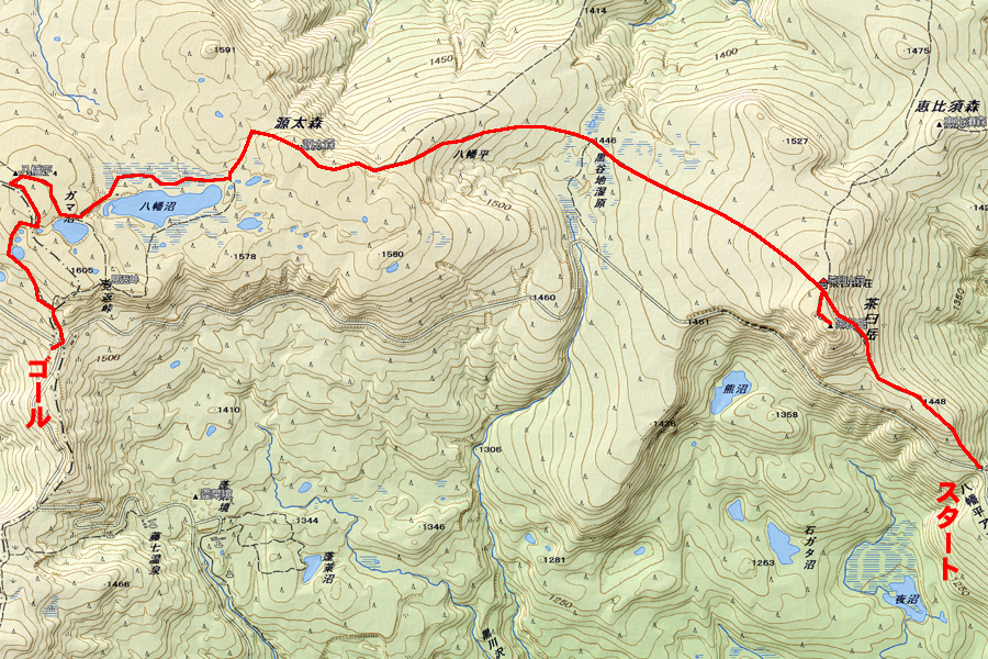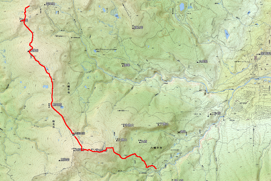 ⇒八幡沼(陵雲荘)⇒八幡平頂上⇒八幡平頂上駐車場 約3.5時間