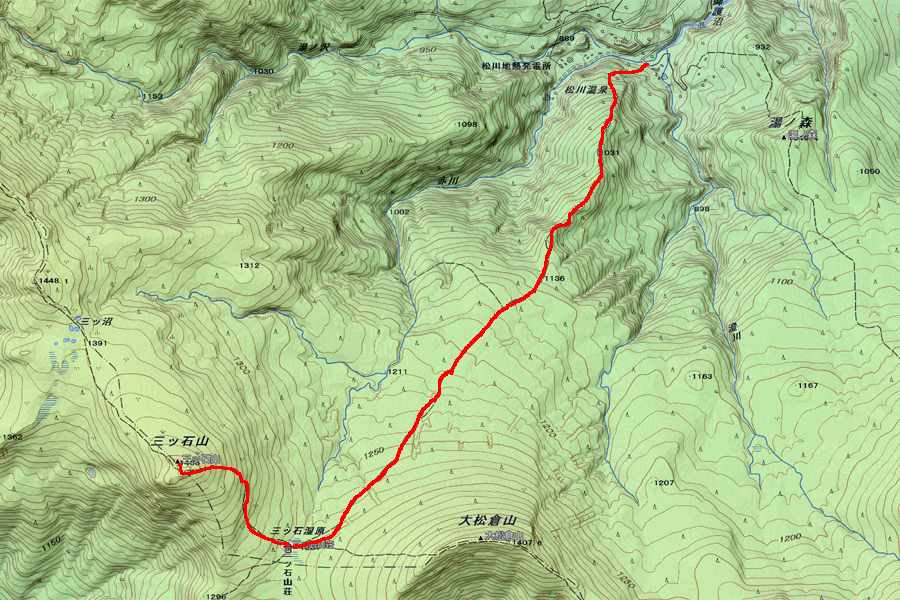 〇コース・所要時間:松川温泉⇒三ツ石山荘⇒三ツ石山頂上⇒三ツ石山荘⇒松川温泉 約5時間