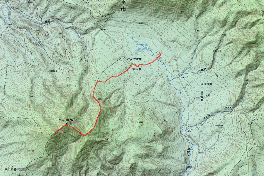 〇コース・所要時間:田代平登山口⇒七時雨山頂上(北峰)⇒七時雨山(南峰)⇒七時雨山(北峰)