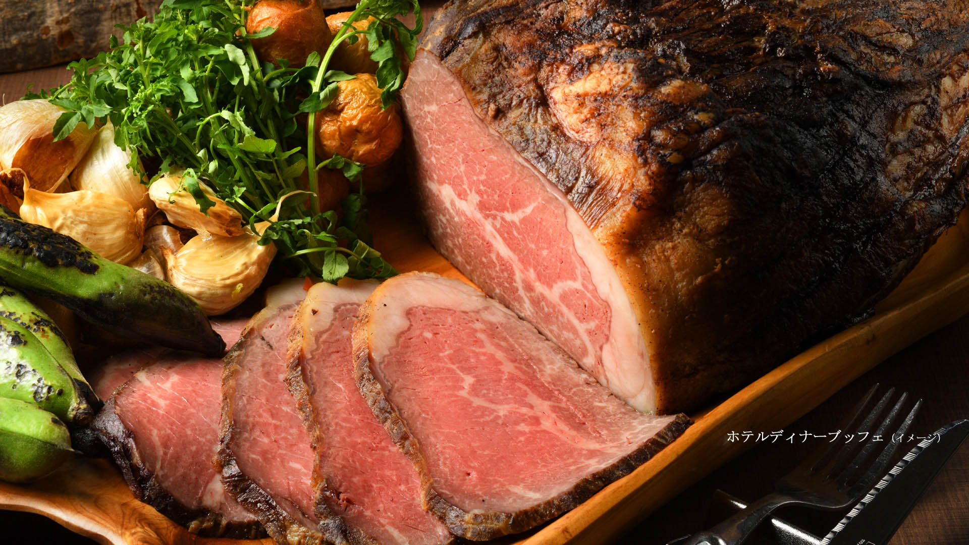 ホテル自慢のローストビーフに舌鼓を鳴らしつつ、ホテルのシェフ自慢の料理の数々をブッフェスタイルでお召し上がりください。