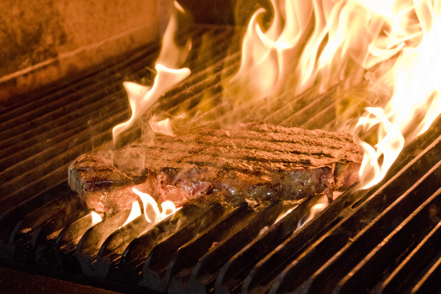 きめの細かい霜降り肉を贅沢に厚切りにしながらも、石窯で