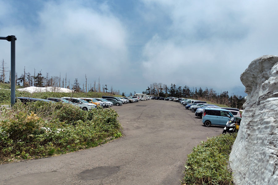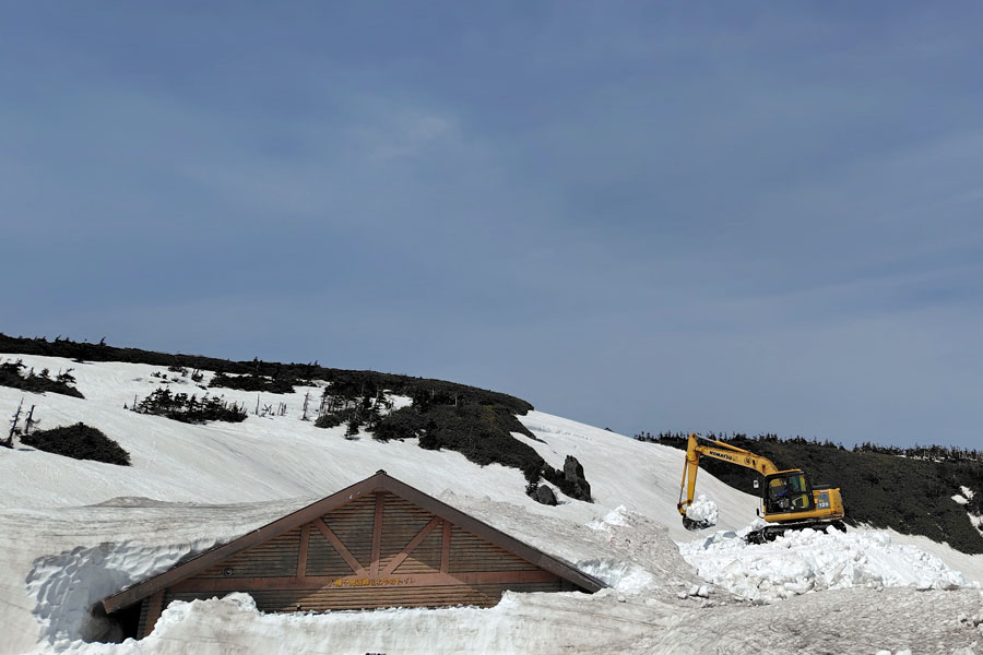山頂有料駐車場の端にある、さわやかトイレを雪から掘り出す作業? が行われていました。