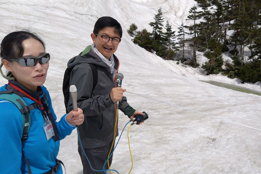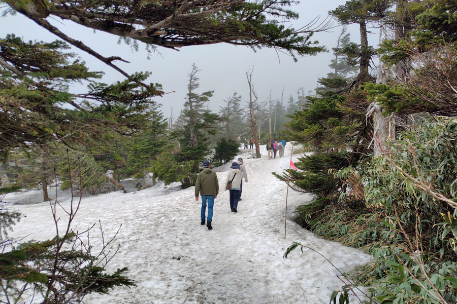 この先はほぼ雪の上を歩きますので、長靴などの丈の高い靴を準備してください。