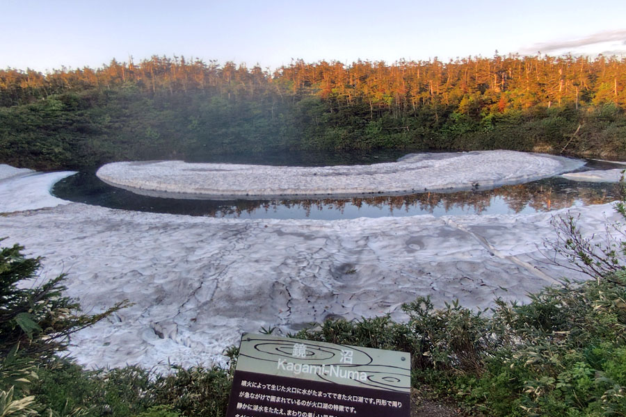 県境登山口からだいたい15分から20分ぐらいでドラゴンアイ(鏡沼)の縁に到着です!