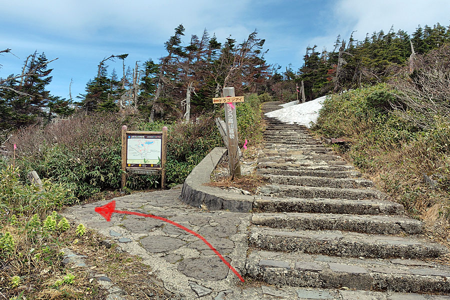 「ドラゴンアイ(鏡沼)」はこの分岐を左へ進みます。
