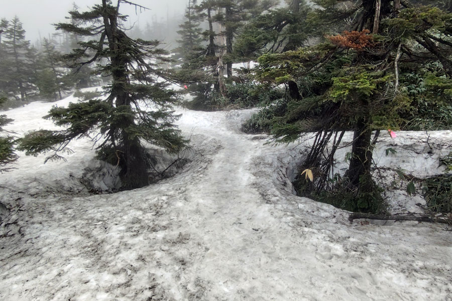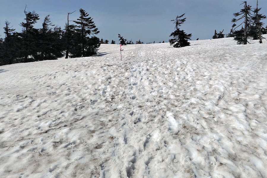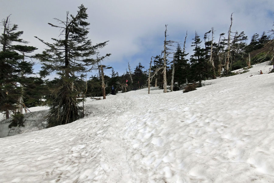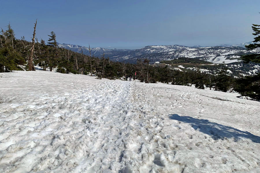 分岐の先も写真のように雪の上をドラゴンアイ目指して進みます。