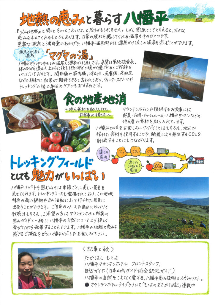 国立公園八幡平エリアは日本でも有数の火山地帯で東北に10ヵ所ある地熱発電所のうち6ヵ所の地熱発電所がある日本でも有数の地熱地帯です。